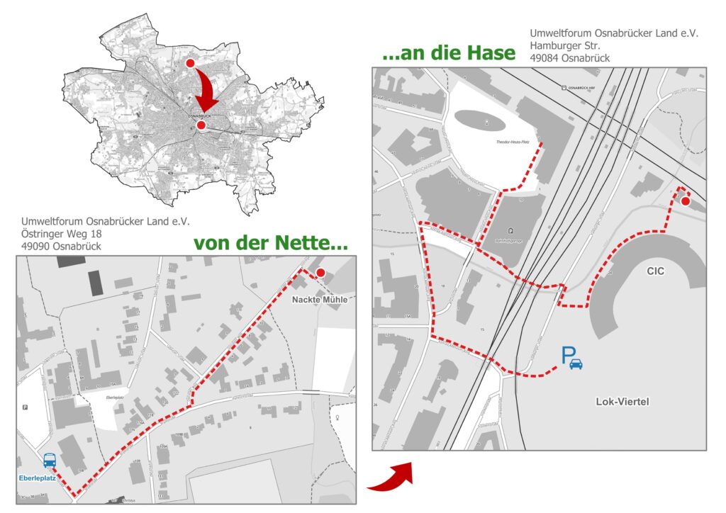das Naturschutzzentrum ist im Herbst 2024 umgezogen und findet sich nun am Lok-Viertel in Osnabrück wieder. Ihr findet uns an der Hamburger Straße 12, 49084 Osnabrück.